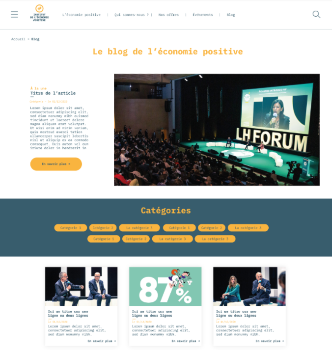 Résultat : une identité graphique unifiée et déclinée au sein de mini-sites, tout en laissant la place à la singularité de chaque évènement. Finalement, à travers la refonte technique et graphique de leur site internet, l’IEP a pu travailler son positionnement et s’affirmer comme un acteur incontournable de l’économie durable et positive.